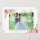 Cartões de agradecimentos de Foto Dourada Floral de Casamento com Blush de Cor-de-Água Rosa