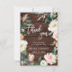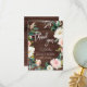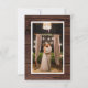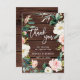 Este obrigado de casamento que você cartão com fotos apresenta uma coroa de flores de aquarela em cor rosa-claro e branco-claro com folhagem verde em um fundo de impressão de madeira rústica. Para personalização mais avançada deste design, clique no link Personalizar Mais para alterar a fonte, o tamanho e a cor.