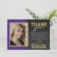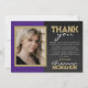 Cartões de agradecimentos Dourado de Graduação em Qualkboard em roxo e bronze - 2 Foto de Repetição de Classe Ano Anterior - Quadro Chalkboard Escuro