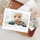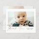 Cartões de agradecimentos de Fotos do Bebê do Script Dourado de Orçamento. O verso inclui uma mensagem da família e uma foto de segundo. Clique no botão editar para personalizar este design com suas fotos e detalhes.