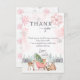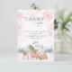 Este cartões de agradecimentos de chá de fraldas cor-de-rosa da floresta de inverno combina com o Bebê. É frio fora da floresta. Ele apresenta "Obrigado" em fontes bonitas com sua mensagem de obrigado. Os animais de madeira de cor doce numa manga rodeada de montanhas e flocos de neve estão certamente encantados.