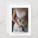Um Casamento Obrigado cartão com fotos plano. A frente do cartão mostra os nomes dos casais e a data do casamento, adornada com um coração vermelho e as palavras - Obrigado! - em letra de escrita elegante. O verso apresenta uma breve nota aos amigos e à família que pode ser personalizada de acordo com o seu gosto. Além disso, o verso exibe uma paisagem aquática de montanhas e pinheiros. *Por favor, lembre-se de substituir a foto na frente do cartão pela sua foto de casamento no formato de retrato.