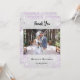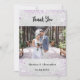 Um casamento moderno Obrigado, cartão com fotos. Um fundo com aparência de prata falsa decorado com brilho púrpura falso. Personalize e adicione sua foto na frente e obrigado nota atrás. Volta: uma borboleta prateada