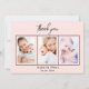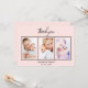 Adicione 3 das suas fotos de aniversário, tamanho vertical, uma data, nome e a nota de agradecimento. Um rosa dourado, fundo embutido com texto e quadro pretos. Personalize e adicione sua nota de agradecimento e seu nome.