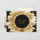 Este casamento ousado, mas elegante, de 5 x 3,5", agradece as cartas que apresentam um grande girassol de ouro iluminado por sol em um fundo preto com marcadores para a saudação, "Obrigado." O verso tem espaços reservados para os nomes de casais casados, saudação e uma mensagem opcional.