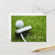 Cartões de agradecimentos de golfe com bola de golfe e Putter sobre grama verde