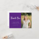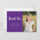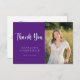 Um cartões de agradecimentos clássico moderno de graduação com um tema simples roxo e branco. A foto é apenas para fins de posicionamento e pode ser substituída por qualquer foto de sua escolha. Personalize o texto na parte frontal e traseira da placa para criar seu obrigado de graduação perfeito. #graduationthankyou #classe de #ensino médio