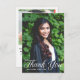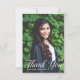 Este elegante cartões de agradecimentos de graduação de fotos com sobreposição de tipografia branca apresenta um script branco chic sobre sua fotografia de formando de segundo grau ou faculdade para a classe de mais velho de 2023. Personalize com seu nome e classe sob a adorável caligrafia e adicione seu próprio texto e segundo.