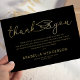 Adicione um pouco de luxo à sua graduação com nossas cartas de agradecimento elegantes e sofisticadas. O fundo na moda preto emparelhado com fontes modernas de script captura sem esforço sua gratidão. Personalizados com seu nome, escola, ano, e uma mensagem sincera, esses cartões de agradecimento celebram perfeitamente sua jornada acadêmica enquanto expressam sua apreciação.