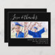 Cartões de agradecimentos de Graduação Preta de Foto Orçamentária - Uma mensagem original foi incluída para salvar o seu tempo de escrita manual, você pode editá-la para usar suas próprias palavras de obrigados, se necessário. As fotografias dos modelos são para fins ilustrativos e podem ser mudadas para as suas. **POR FAVOR LEIA ANTES DE COMPRAR** A papelaria de orçamento tem tamanhos não padrão (4,5" x 5,6") e o envelope de ajuste mais próximo é A6, disponível em todos os tipos de cores em sua loja de papelaria local. O estoque de cartão é branco brilhante, com acabamento semirbrilhante e um peso de 110 lbs, adequado para convites. NÃO aconselhamos você a escolher a opção de papel satin, pois é um papel de 80 lb muito mais fino, que é mais parecido com as páginas de revistas do que o estoque de papelão. Se você preferir um convite de tamanho padrão impresso no estoque de cartão de 120 lb com um acabamento mate, poderá transferir este design para uma placa plana usando as opções de design de transferência acima. As placas planas não estão na faixa de orçamento, mas você tem uma variedade maior de tamanhos e opções de estoque de cartão e elas são enviadas com o envelope de tamanho correto. A forma e o tamanho mais adequados ao design aparecerão nas opções de transferência do design. Se você fizer alterações na forma ou no tamanho ou escolher outro produto e o design for cortado de alguma forma ou não parecer direito na página, você precisará usar o Serviço de Design ao Vivo para que alguém ajuste o layout para você, a menos que você se sinta confortável fazendo isso sozinho. Não há nenhuma verificação manual ou intervenção entre a colocação do pedido e a impressão, portanto o que você vê na tela é o que será impresso e enviado a você. Com isso em mente, por favor, verifique também triplamente se há erros de ortografia ou informações incorretas antes de fazer seu pedido.