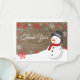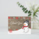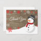 Cartões de agradecimentos Vermelho Snowflake de Snowflake no Natal de inverno.Homem de neve. Fundo Burlap. Campo de Vintage Retro Barn. Floco de neve vermelho. Amor e Obrigados, bela fonte de roteiro. Adicione sua mensagem de volta ou deixe vazio e escreva à mão.