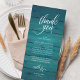 Torne a sua recepção de casamento especial com este cartões de agradecimentos de casamento elegante, projetado para ser colocado na configuração de janto de cada convidado. Apresentando um layout moderno minimalista com letra chic script lettering, tema verde azul de cabine rústico, é uma maneira ponderada de expressar gratidão à família e amigos por compartilhar seu grande dia. Perfeito para jantas de casamento, jantadas de ensaio ou recepções, este cartão personalizável pode ser personalizado com os seus nomes, data e mensagem especial. Um detalhe de na moda que dobra como decoração de mesa de casamento, dando aos hóspedes uma grande atenção para se lembrarem da noite. Ideal para temas de casamento modernos, rústicos ou clássicos.