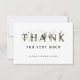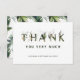 Este obrigado de casamento que você tem muito na sua carta, tem a cor d'água, letras verdes de folhagem tropical e o ouro falso com sotaque de folhas de banana no verso. Perfeito para casamentos, aniversários, graduações e outros eventos. >>> Veja a coleção inteira >> https://www.zazzle.com/collections/tropical_foliage_green_collection-119021829937676776