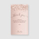 Um fundo rosa dourado, decorado com brilho falso, faíscas. Escrita escrita com letras grandes com baloiços e o texto: Obrigado. Personalize e adicione sua nota de agradecimento e seu nome.