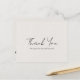 Cartões de agradecimentos moderno de negócios orçamentário com um layout simples e minimalista com "Obrigado" na frente, em uma tipografia elegante de script, sobre um fundo neutro de textura falsa bege. As costas têm sua mensagem pessoal junto com seu código QR e ícones de mídia social. Este cartões de agradecimentos profissional é excelente para qualquer pequena empresa.
