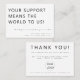 Com um design minimalista e elegante, este cartão é adaptado para que as pequenas empresas expressem obrigados para compras e encomendas. Use o espaço para incluir seu logotipo, uma mensagem de desconto ou um toque suave para seguir suas páginas de mídia social. Ideal para aprimorar o toque pessoal em sua embalagem, essas placas de obrigado-você são uma maneira criteriosa de construir relações mais fortes com o cliente. Faça com que seus clientes se sintam agradecidos — solicite seus cartões personalizados hoje mesmo!