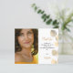 Um cartões de agradecimentos fotográfico moderno e elegante. Um fundo branco chic decorado com folhagem de eucalipto ouro. Personalize e adicione sua foto, sua nota de agradecimento e seu nome. Fundo branco.