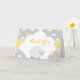 Obrigado pelo cartão dobrado no tema "ovelha/borrego", em cores neutras em termos de gênero (cinza e amarelo)