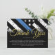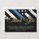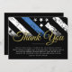 Este design apresenta uma bandeira da polícia com listras pretas e brancas, e uma fina faixa azul de linha também. Este cartão é excelente de enviar uma mensagem para o obrigado a todos os hóspedes que frequentaram o polícia aposentado, xerife, capitão ou chefe da festa de aposentadoria.