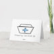 Cartão de saudação "Obrigado", fundo azul claro com listras brancas e design de enfermeiro.