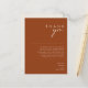 Este simples cartões de agradecimentos de recepção do Desert Terracotta é exatamente o que você está procurando para completar o seu casamento do bô russo moderno. Perfeito para uma vibração ocidental minimalista ou para uma sensação boêmica retrorreflectora. O guião branco natural mínimo verdadeiramente pop com este fundo colorido do outono. Você pode optar por mantê-lo como está ou personalizá-lo com seu próprio trabalho de arte ou fotos. Role pela coleção para selecionar outros itens que farão o seu casamento outono cantar com autenticidade!