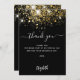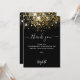Um fundo preto, brilho de ouro falso decorado, brilhos. Escrito escrito em grande mão e texto: Obrigado. Personalize e adicione sua nota de agradecimento e seu nome. Texto branco.