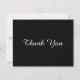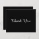 Cartões de agradecimentos de negócios branco e preto minimalista com tipografia elegante de script branco. Personalize adicionando uma mensagem de obrigado ao reverso juntamente com os detalhes de contato da sua empresa. Perfeito para uma vasta gama de profissões, incluindo: maquiador, salão, boutique, cabeleireiro, salão de beleza e planejador de eventos. Uma maneira excelente de deixar seus clientes e clientes saberem o quanto você os aprecia. Projetado por Thisnotme©