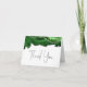 Esta elegante design apresenta um caçador verde agate no topo da borda com cintilação de prata. As palavras "Obrigado" aparecem na frente de um guião de escrita manual falso/brilhante. Dentro, substitua o texto pelo texto escolhido ou apague para deixar vazio.