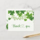 Obrigado pela sua cartão de visita. Este design apresenta um padrão de shamrock intertecedor. O texto "Obrigado" está escrito no estilo caligrafia. Personalize com seu próprio texto. Você também pode mudar a fonte, a cor e o tamanho.