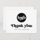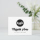 Cartões de agradecimentos comercial com o texto "Obrigado" em uma fonte com estilo retroativo. Texto preto (ou cor personalizada) em um fundo branco (ou cor personalizada). Carregue seu logotipo na frente e adicione texto personalizado na parte traseira. Você pode alterar cores, mover e redimensionar elementos com a ferramenta design.
