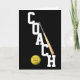 Texto branco do COACH com softball amarelo e taco em fundo preto para o obrigado do treinador de softball. O nome no softball é editável.