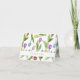 O design do produto apresenta um padrão de flores tulipas coloridas em roxo, vermelho, rosa, azul e amarelo. Esta ilustração botânica com texto personalizado faz belos cartões modernos e únicos para aniversário, Páscoa, Dia das Mães, chá de panela, casamento, e muito mais - OBRIGADO.