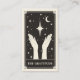 Este cartões de agradecimentos de casamento Boho apresenta um design de estilo carta-tarô em uma paleta de cores preta e creme. A ilustração mostra duas mãos num gesto de gratidão. O fundo tem uma lua e estrelas cintilantes. Isso seria perfeito para qualquer um que tivesse um casamento no tema Celestial, mágico ou Estrela ou para alguém com uma estética brutal que buscasse um tema de palmica ou fortuna. O verso pode ser deixado vazio para uma mensagem manuscrita.