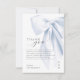 Expresse sua gratidão com este Cartões de agradecimentos de Chá de fraldas Azul. Com um delicado arco azul claro e uma escrita romântica, esta carta é uma bela maneira de obrigado dos seus convidados pelo seu amor e apoio com uma nota personalizada.