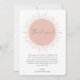 Este cartões de agradecimentos simples e elegante apresenta um boho terracotta sol, e a tipografia moderna. Perfeito para uma celebração neutra em termos de gênero. Você pode personalizar este design clicando em "Personalizar este modelo" ou se quiser alterar a fonte, as cores ou organizar os elementos design de uma forma diferente, você pode clicar em "Editar usando a Ferramenta Design".
