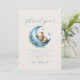 Este cartões de agradecimentos de chá de fraldas bonitinho apresenta um doce ursinho d'água dormindo em uma lua azul crescente decorada com flores, abaixo das palavras "obrigado você" em roteiro azul de caligrafia. Personalize o texto com a sua mensagem na fonte sans serif e na linha de assinatura no script em um plano de fundo bege. Ideal para o chá de fraldas de um menino.