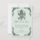 Estas Ruas verdes e suaves "Lucky Little Graças You". chá de fraldas do Dia de Patrick Os Cartões de Agradecimento Apresentam uma carruagem vitoriana irlandesa desenhada à mão, enfeitiçada em tons verdes suaves e cercada por shamrocks verdes sortudos, todos contra um elegante fundo verde-suave. A parte traseira apresenta um padrão cronológico correspondente com esses mesmos elementos. Estas cartas de agradecimento são da coleção de chás de fraldas "Lucky Little Shamrock".