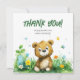 Envie uma doce e alegre nota de apreciação com este adorável cartões de agradecimentos de chá de fraldas de urso de floresta. Apresentando um sorridente urso de aquarela rodeado por flores silvestres, borboletas, e verde macio, este design adiciona um toque lúdico e sincero à sua celebração. Perfeito por agradecer aos convidados que se juntaram ao seu dia especial. Impresso em estoque de cartão de alta qualidade e totalmente personalizável com sua mensagem, este cartão faz parte de uma coleção de chás de fraldas de floresta correspondente. Quer você esteja hospedando um chá temático ou rústico, é uma maneira fácil de mostrar sua gratidão. Comece a planejar seu partido em minutos com as ferramentas de edição fáceis do Zazzle!