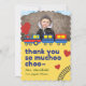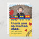 Ótima ilustração de um cartão de boas-vindas de trem que diz, "Obrigado Muchoo Choo!". Presente perfeito para professores.