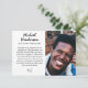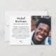 Pessoalmente, obrigado a sua família e amigos que o apoiaram durante toda a sua dor, com estas cartas de agradecimento modernas e no seu próprio tempo. Apresentando um texto que diz "na memória amorosa", uma foto e o nome do seu amado, datas importantes e um tributo tocante. O outro lado da placa tem um obrigado que você envia e o nome da família, todos os aspectos da placa são facilmente personalizados.