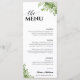 Menu folha única, tamanho: 10,16 x 22,86 cm, papel: Semi-brilho Básico