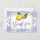 Obrigado Nota Cartões com limões de aquarela complementados por um padrão clássico de azulejo azul/branco da Tuscan com letra moderna e escrita à mão. Personalize com sua própria redação/detalhes! Para mais personalização, clique no botão "Personalizar" e use nossas ferramentas de design para modificar este modelo. Nem todo trabalho de arte e texto podem ser modificados.