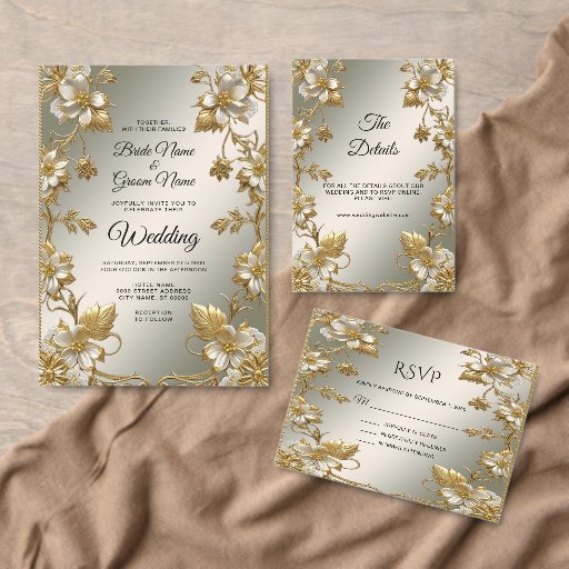 Belo Cartões de agradecimentos de Ornamentado Dourado Floral Branco Escolha sua preferência de tipo de papel. Opções de Tipo de Papel: Corresponder Papel Semi Brilhante