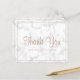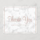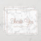 Cartões de agradecimentos orçamental moderno e elegante, com "Obrigado" em um roteiro de rosa dourado junto com seu nome comercial, cercado por uma fronteira, sobre uma cinza e fundo de mármore branco. O verso tem sua mensagem personalizada. Esta design simples e feminina é excelente para um artista maquiador, cabeleireiro, lasca tecnicista, salão de beleza / unha ou qualquer negócio de mulheres.