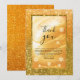 Cartões de agradecimentos Dourado elegante | Brilho e pérolas com fundo cor de laranja quente, borda brilhante do ouro mole,