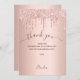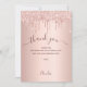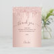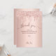 Um fundo rosa dourado, decorado com pingos, pintura pingando. Escrita escrita com letras grandes com baloiços e o texto: Obrigado. Personalize e adicione sua nota de agradecimento e seu nome.