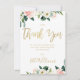 Cartões de agradecimentos florais cor-de-rosa do chá de fraldas