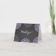 Obrigado cartões de nota com fundo do quadro e design floral roxo.