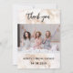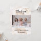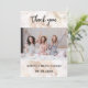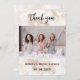 Um Chá de panela moderno Obrigado cartão com fotos. Um pedreiro branco, flor como fundo. Personalize e adicione sua foto e obrigado nota.