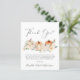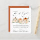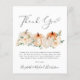 Elegante cartões de agradecimentos de orçamento para seu chá de fraldas com "Obrigado" em um roteiro de na moda com um inchaço cardíaco e aquarelas de abóboras laranja e creme e buquês florais. Personalize o seu obrigado, transmita uma mensagem em uma simples tipografia moderna e adicione seus nomes em um script semelhante a uma assinatura.